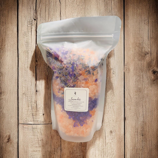 Mineral rich bath salts are a stress reliever. Reduce stress and induce calmness while inhaling the aroma of lavender.